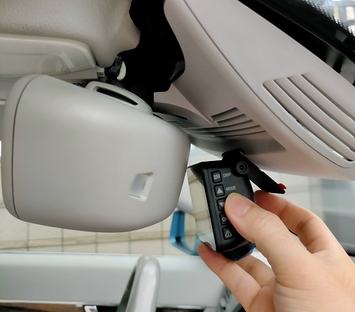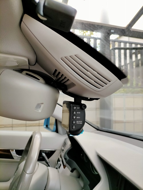 試運転をしてみました。ほぼOKなのですが、ドラレコが完全に垂直にならないのと、ルームミラーの後ろがアダプタの先に干渉して、ルームミラーの向きが完全に思い通りになりません。さらにアダプタに改良が必要です。