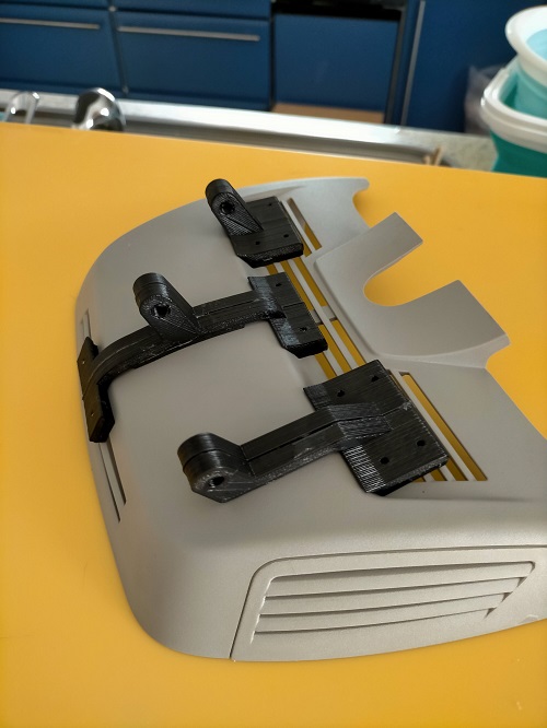 実は最初に作ったアダプタは目測でした。これだとドラレコがルームミラーに当たって取り付けられないことがわかり、更に支柱を伸ばしましたが振動で揺れそうな恐れがあったことから、素直にカバーを3Dスキャナで形状を測ってカーブにフィットさせ、前後のスリットでアダプタを押さえる方式にします。