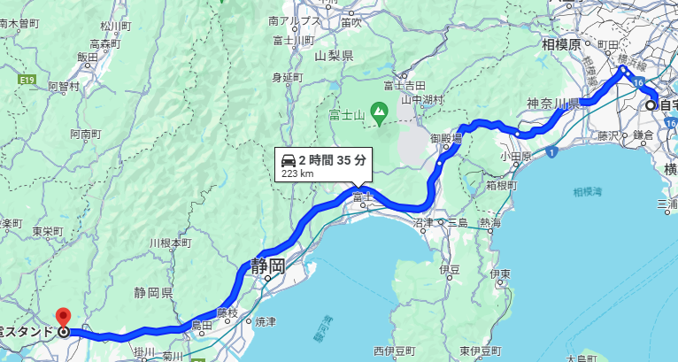 今回も80%=440kmになるまで充電します。地図上での走行距離223kmに対し料金は2430円なので、1kmあたり10.89円になりました。充電時間は22分。浜松SCは浜松SAのすぐ隣なので、トイレに行ってコンビニでおにぎりを買い戻って食べ終わると充電終了ぐらいの小休憩です。