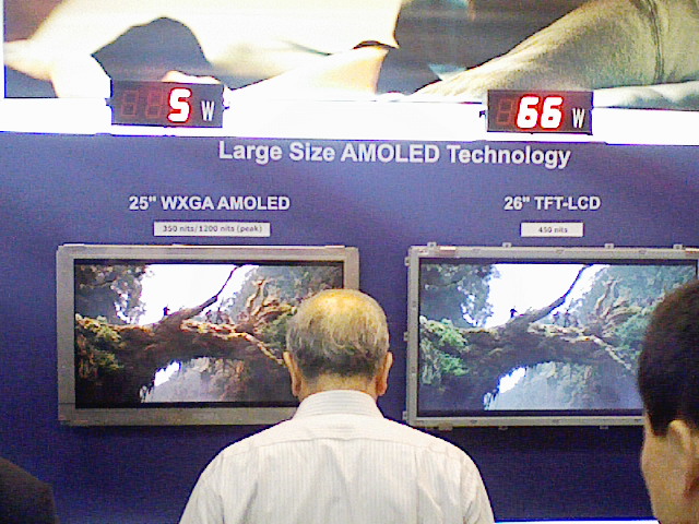 で、この画像みてください。左は有機EL、右側は液晶、右側の26型を面積で4倍にすると52型になるでしょ。66Wも4倍すれば264W。それに比べて左側の有機ELは5W、25型だから、4倍して50型のテレビができたとしたら、20W。つまり1/10以下なんですよ。やっぱ、有機ELの50型が出来上がるまで待つべきでしょうかね。