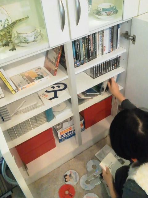 この食器棚。下の部分があまり有効利用できていなかったんで、棚を3段作ってCD入れに変更。
