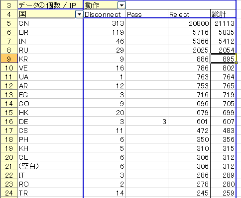 相手のIPアドレスは散らばっていてたくさんのPCから来てるって感じ。日本は圏外に行ってしまったぞ。