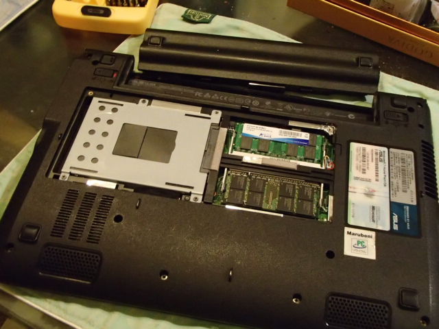 コピーはどれぐらい掛かりましたかねぇ。3時間ぐらいだったかもっとだったか。気がついたらPCが再起動して古い方のSSDで立ち上がっていたので分からず。 シャットダウンしてSSD交換。 このPCも2010年に購入でかなり年季が入ってきたのですが、HDDからSSDに交換して快適になりそのまま使い続けてます。もうHDDには戻れないわ。あと、無理やり薄型でもないので、このとおりディスク交換も簡単です。