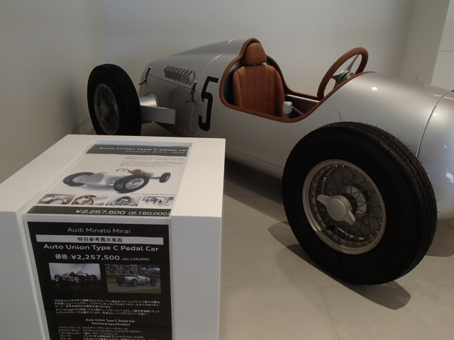 なんでも、日本で一番おおきなディーラーだそうですよ。確かに大きい。たぶん、すべてのクラスが置いてあるんじゃないかな。あのR8も置いてある。これ、東京のどっかで見たことあるんだけど、とても買える代物じゃないよねぇ。