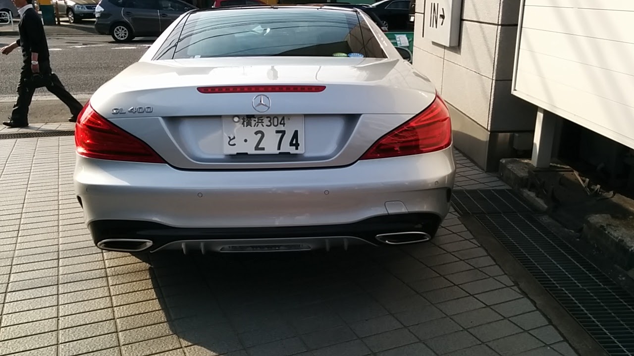ちょっと近くに行く用事があったのでディーラーに寄ったら、おろしたてのSL400がポンと。あら、これ乗れるじゃないですか! ということで早速試乗へ。 とその前に、他の店舗を転々として久しぶりに戻ってきたサービス(左)とセールス(右)のコンビ。なんか久しぶりじゃないですか。