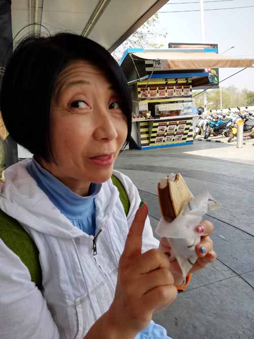半分ほど進んだところで、ドライブインに立ち寄る。我々も休憩、コンビニでアイスクリームを買ってみた。現地のアイスもいいが、なぜか贅沢にハーゲンダッツを選んでみたところ、なんと!129バーツもした。520円ぐらい。バカ高い。輸入ものだから税金でも掛かってるんじゃないか?